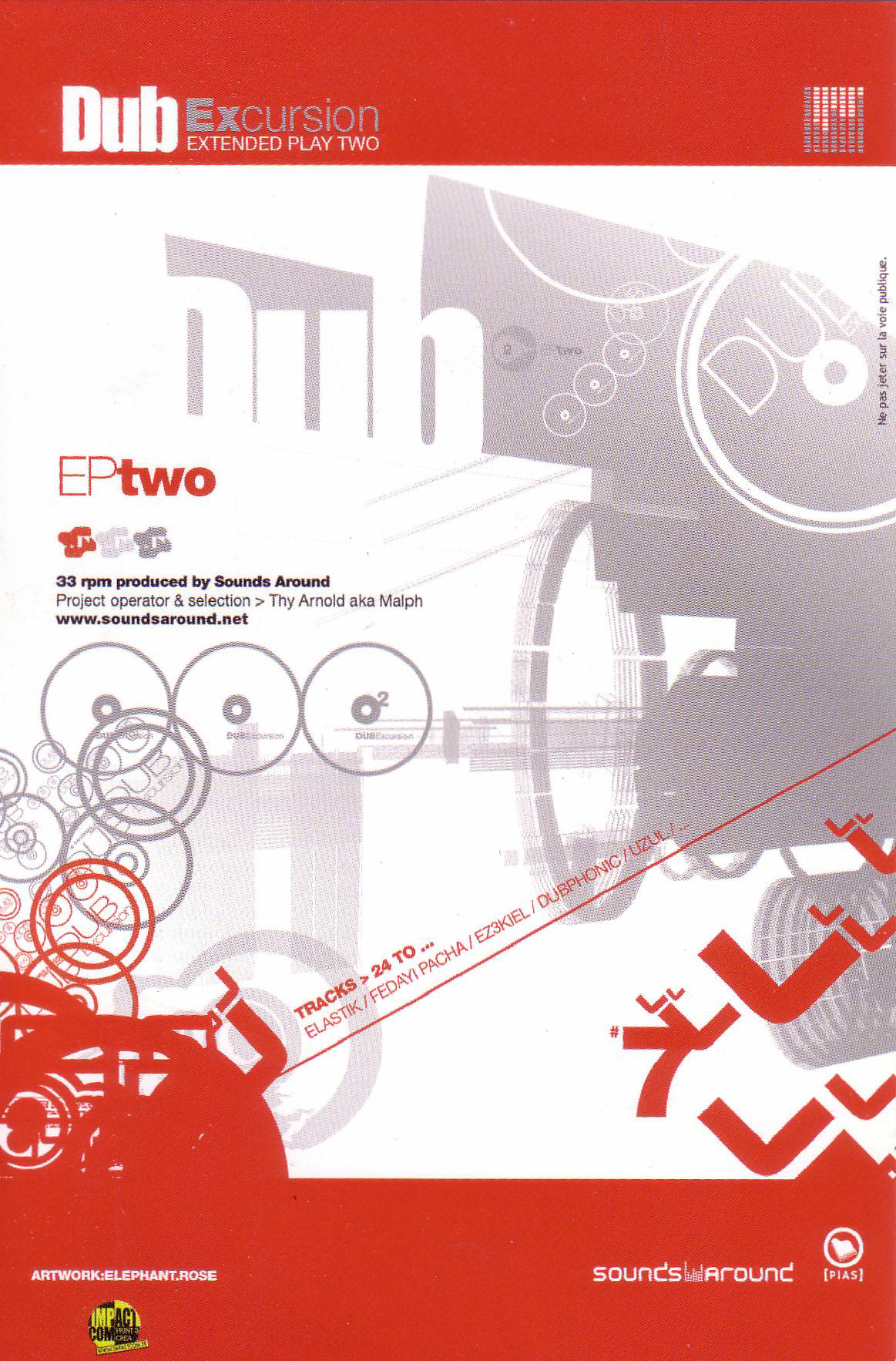 Sounds Around est un label électronique et dubadélique, de productions actuelles de dub français. On a des collaborations avec des anglais et des jamaïcains. Moi, je suis juste un fan de musiques. Ce qui s’est passé cette année, c’est encore un mystère. Moi je veux vraiment kiffer avec des gens comme Sism-X. On se connaît depuis des années et là on commence à travailler ensemble. On a fait le deuxième album, le DubStrike, qu’on a fait en deux mois alors qu’on devait faire un maxi. Et trois mois après t’es dans les bacs, donc c’est vraiment un jet d’énergie tu vois ! C’est comme avec Hybrid Sound System : on s’est rencontré pour Dub Excursion. Moi, j’adore ce qu’ils font au sein de Kaly et au sein d’Hybrid. Et un jour, Stéphane m’a appelé en me disant : »On va sortir notre album, on veut le sortir chez toi ». C’est super, on se retrouve ! On a tous la même énergie. Eux sont dans leur cave à Lyon… Il y a Uzinadub à Bordeaux, il y a Sism-X à Genevilliers, GG Project à Rennes et moi je suis là entre tout ça ! Ce qui fait qu’on est là à graviter, et qu’on fait du breakbeat, de la drumn’bass, de l’électro, du dub. Je suis un électron libre, mes potes sont dans la musique depuis des années. J’ai monté mon label et c’était pas un désir. Ça s’est fait naturellement. Je me suis dit qu’il fallait que je le fasse parce que c’était la meilleure solution pour moi.