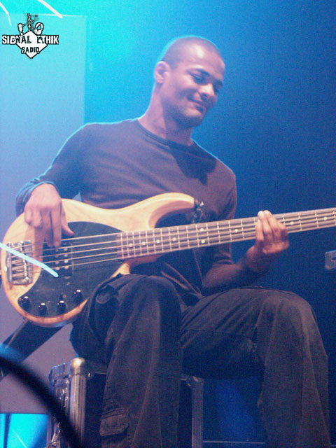 En studio, il y a Fred Norguet, qui est alors le « quatrième membre » d’Ez3kiel. Il ajoute sa patte. Quand on compare la couleur des morceaux avant et après le studio, on voit qu’il tire tout vers le haut. On lui fait entièrement confiance. C’est un excellent producteur. Il est trés reconnu dans le milieu hardcore&grosse guitare, mais c’est quelqu’un qui fait de la musique électronique, et vachement bien. On se connaît depuis maintenant 10 ans… En live, on en mettait au début. Mais comme c’est très très dur d’une scène à l’autre, maintenant, on lui laisse le même son. Dimitri, à mon avis, gère le son en fonction des morceaux. Moi, je n’y touche pas pour simplifier les choses.
