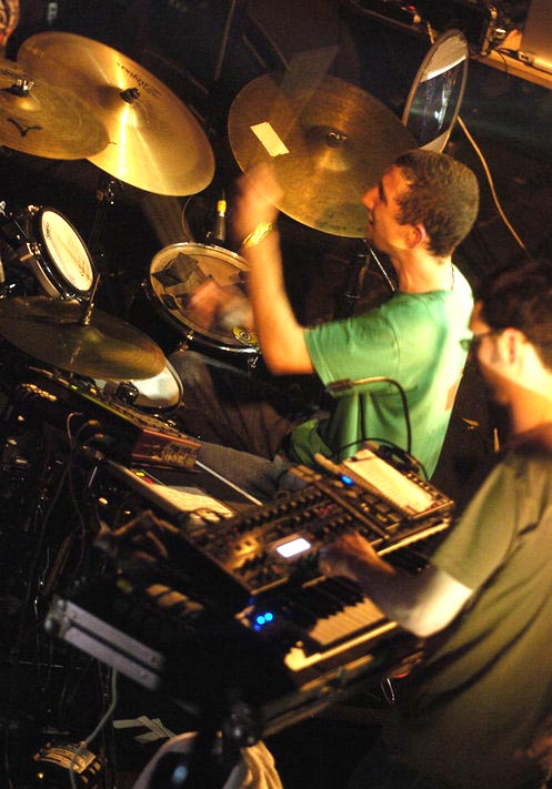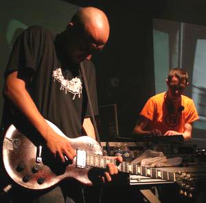 A l’origine tout est un travail de collectif. On refuse catégoriquement que quelqu’un amène trop d’éléments d’un coup. Il faut que cela naisse au local. Ça fait 10 ans qu’on fait de la zique et au début il y avait pas d’ordinateur et il n’y avait pas assez de mémoire pour dire « je pose l’ordi au milieu de la pièce, puis j’enregistre des boucles et je les recolle »… C’est venu progressivement et c’est vrai qu’aujourd’hui on utilise en partie ces techniques aussi, c’est-à-dire produire en jouant au local mais tout part de la rencontre au local. Après ce qui change, par rapport à avant, c’est que nous composions les morceaux les uns derrière les autres. On prenait un morceau, une idée apparaissait et nous l’amenions jusqu’au bout de sa structure et de sa composition, que cela prenne une semaine, un ou deux mois. Mais à la fin on avait notre premier morceau, et au bout d’un moment, on avait de quoi faire un album. Maintenant on travaille plus au local de façon spontanée : au lieu de finir un morceau et de le finir tout de suite, dès qu’une idée nous plait, on l‘enregistre et on passe à autre chose directement, sans le structurer, et sans le finir. Tous les jours on fait de la compo, de la compo, de la compo et on arrive à une cinquantaine d’ambiances qui ne sont pas finies. Mais au bout de 4 mois, au lieu de n’avoir que 4 morceaux complètement achevés on en a 40 qui ne le sont pas. Ca nous laisse un plus large panel pour choisir lesquels on va choisir pour un disque. Parfois, lorsque tu composes les morceaux les uns derrière les autres, tu as une idée qui semble bonne sur le moment parce que tu te fais plaisir, mais en fait elle ne subit pas l’épreuve du temps. Et si tu as perdu du temps sur un morceau et après que tu n’en as que 10, tu seras obligé de le mettre dans ton album parce que t’en auras pas d’autres, alors on choisit de développer 40 ou 50 idées au lieu de 10.