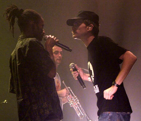 Dj Pee : Ca s’est fait par hasard pour Asian Dub. Pour JC ça s’est fait par contact. Mais les deux de la même façon, a travers notre tourneur qui est basé à Lille et qui s’occupait de d’Asian Dub Foundation. Il y avait un groupe français qui devait faire la première partie de toute une tournée. Un groupe de libanais qui mélangeait du rap en arabe, en français, et en anglais. Et 15 jours avant la tournée, alors qu’ils avaient leur album de prêt, et alors que c’était un projet qui était vraiment très bien, ils ont pété les plombs. Le mec est reparti au Liban, et il ne voulait pas sortir le disque qu’il ne trouvait pas assez bien. Donc notre tourneur nous a proposé de les remplacer et ça a été une occasion pour nous de “grandir”, de passer de salles entre 300 et 500 personnes à des salles entre 1000 et 5000 parce que l’on s’est retrouvés aussi à faire des Zéniths. Ca a donc été une super bonne « promotion », une manière de progresser dans le monde de la musique, en jouant dans des conditions beaucoup plus difficiles. On ouvrait pour un groupe qui était connu. Ca s’est fait complètement par hasard. JC on l’a aussi rencontré avec notre tourneur : il faisait des featurings avec Badmarsh&Shri, qui tournait avec Natacha Atlas. On cherchait un mc et quand ils sont passés à Lyon on est allés les voir et on a rencontré JC backstage. Ca c’est super bien passé puisqu’il est avec nous depuis. Ca a été des rencontres et des opportunités.
