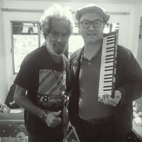 Ah complètement ! Justement c’est ce qu’avaient vécu les Clashs. Ils étaient dans la banlieue de Londres, ils n’avaient pas de boulot et ils voyaient les jeunes Jamaïcains à Londres qui étaient dans la même merde qu’eux. Ils ont écouté la même musique, ils étaient potes. Après il y a eu la même chose avec le ska, les Specials, Two Tone Records. Les Blancs, les Noirs, tout le monde était dans la même merde à essayer de partager des choses avec la musique, d’avancer, d’avoir un message positif pour tout le monde. C’était ça qui m’intéressait avec une musique que j’ai toujours adoré respecter. Après, le message rastafarien vraiment profond et religieux, Hailé Sélassié , tout ça, je ne me suis jamais vraiment penché dessus parce que ce n’est pas ma culture. Par contre, ce que je trouvais bien, c’est que les Rastas les plus fervents par rapport à leur croyance religieuse n’excluaient pas les autres et qu’ils accueillaient tout le monde. Après on n’accepte ou on n’accepte pas le concept mais le message est universel et rassemble les gens. Je ne me considère pas un comme un rasta même si certains que j’ai croisés me disent que je suis plus rasta que certains autres. Ce n’est qu’une histoire de couleur de peau, je n’ai pas de dreadlocks. Le reggae, la musique jamaïcaine me fascinent depuis plus de trente ans maintenant. Je suis bien content d’avoir rencontré des gens comme Nambo Robinson, tromboniste de Sly & Robbie. Je l’avais vu jouer il y a 30 ans à l’Elysée Montmartre à un concert de Freddie McGregor avec Maxi Priest et le Taxi Gang de Sly & Robbie, et 30 ans après, grâce à Myspace, je suis rentré en contact avec lui et de fil en aiguille il m’a proposé d’enregistrer avec moi un morceau parce qu’il avait entendu comment je jouais du mélodica. C’était vraiment un honneur incroyable. C’était un monsieur qui avait plus de 40 ans de carrière, qui nous a malheureusement quittés le 25 janvier 2017. J’ai pu faire quand même une production avec lui. Je voulais en refaire d’autres, c’est uniquement sorti sur le net et j’aurais bien aimé faire un vinyle si j’avais eu le financement. On peut l’écouter sur mon bandcamp.